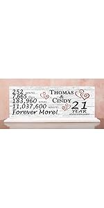 Amazon Com 21 Year Anniversary Sign Gift Plaque Personalized 21st Anniversary Wedding Gift For Wife Husband Couple Him Or Her Home Kitchen